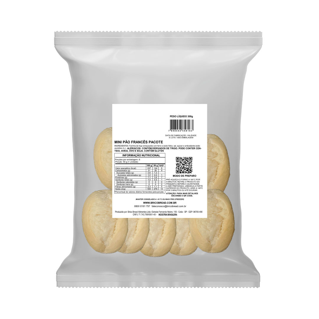 Conheça o Delicioso Mini Pão Francês da Brico Bread. Saboroso, e ideal para pequenas refeições fracionadas, como couvert e mini lanches. Essa edição conta com as embalagens, ou seja, o produto irá embalado em pacotes na caixa. Produto Clean Label. Produto Pré Assado Ultracongelado.